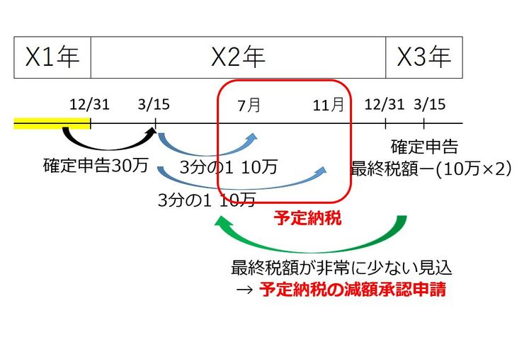 所得税は2年目以降は、前払いとなる部分が発生します。